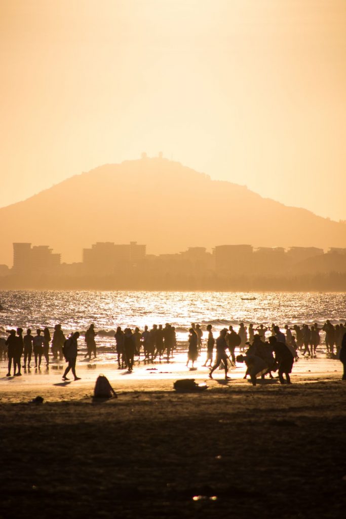 海边的黄昏,金色的夕阳洒满了海面,仿佛千万颗宝石在闪耀。